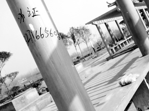 ??? 左鞋右穿:看到濱河公園泛濫的辦證小廣告,很是氣憤,難道沒(méi)有辦法管理一下嗎?