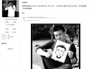 網(wǎng)友開博客紀(jì)念李曉明,圖為博客首頁截圖?!。▽O艷 制作) |