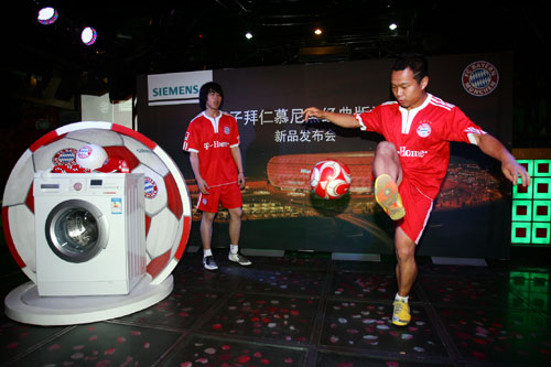 5月22日,在拜仁慕尼黑與國(guó)際米蘭角逐歐洲冠軍杯之夜,西門子家電在北京隆重揭幕了全球限量發(fā)行的西門子拜仁慕尼黑經(jīng)典版洗衣機(jī),同時(shí)宣布西門子家電正式成為拜仁慕尼黑俱樂部的贊助商。拜仁慕尼黑俱樂部中國(guó)官方網(wǎng)站代表、中國(guó)體壇傳媒集團(tuán)高級(jí)副總裁顏強(qiáng)先生、前國(guó)安隊(duì)員、著名足球運(yùn)動(dòng)員徐陽先生、西門子家用電器中國(guó)區(qū)洗滌產(chǎn)品部總監(jiān)任培東先生,與眾多拜仁慕尼黑球迷一起見證了這次活動(dòng)。