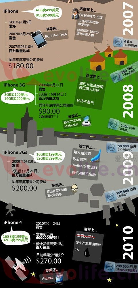 ????iPhone 3GS于次年6月19日上市,價格不變量更足,這次僅2天就打破100萬銷售記錄。蘋果股價彪至200美元。當(dāng)年App Store中已有100000個各種應(yīng)用。