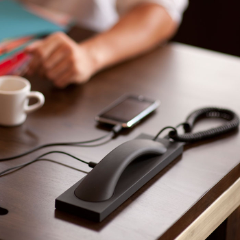 ????為蘋果公司產(chǎn)品設(shè)計生產(chǎn)了眾多配件的摩仕公司又為蘋果迷們提供了一個新選擇。這款話筒附件延續(xù)了摩仕公司產(chǎn)品一如既往的設(shè)計風格,其造型十分優(yōu)雅、圓潤,與蘋果產(chǎn)品搭配起來可謂是相得益彰。它可以讓使用者變更iPhone手機的電話接聽方式,讓手機在辦公時候使用起來更加方便。您可以選擇將手機和全副話筒套件連接起來,這樣便能通過拿、放話筒來接聽、掛斷電話。當然,您也可以讓話筒直接與手機相聯(lián),只不過如此一來,便需要借助手機界面的掛斷鍵來掛斷來電。若是配有無線網(wǎng)絡,這款電話附件也可以為iPad提供通話輔助服務。