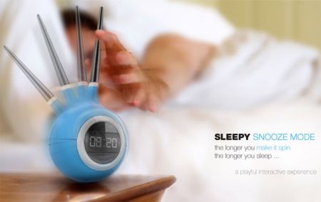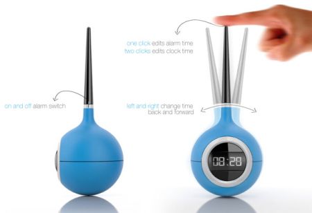 ????這款好似不倒翁一樣的搖擺鬧鐘,設(shè)計的精妙之處完全在它的那根天線棒上:通過點觸天線尖端,您可以設(shè)置鬧鐘的時間;轉(zhuǎn)動天線棒可以打開或關(guān)閉鬧鈴功能。除此之外,它的妙用還在于當鬧鈴響起時,如果您還想多睡一會,可以撥動天線棒,使鬧鐘像不倒翁一樣搖擺,鬧鐘會在搖擺停止時再次響起。想讓鬧鐘多響幾次,這款鬧鐘真是十分方便呢。