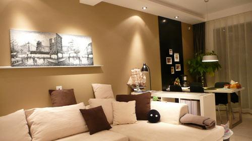 重點(diǎn)看吊頂、窗簾、沙發(fā)、和飾品布置的渾然一體