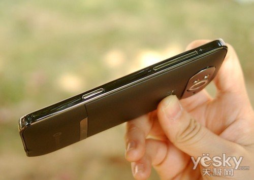 HD7的屏幕下方設(shè)置了WP7手機(jī)標(biāo)準(zhǔn)的后退、Home、搜索三顆功能鍵,全部采用觸控式操作,支持震動(dòng)回饋,底部有MicroUSB接口及3.5mm接口。HD7另外一個(gè)獨(dú)特的地方便是它在機(jī)身的背面鏡頭處設(shè)計(jì)有一個(gè)支架,可以讓手機(jī)豎立在桌面上觀看電影視頻時(shí)時(shí)候用。