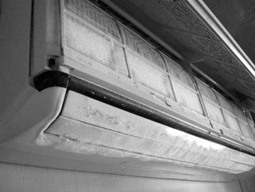 “沒想到天冷了,家里的松下牌空調(diào)卻開始制冷,并且表面結(jié)上了一層薄薄的冰?!绷_大叔說(shuō),他們?nèi)嗽谖堇?,卻仿佛置身室外。