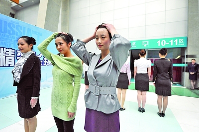 昨天東航“海選”現(xiàn)場,美女們進(jìn)行形體展示。劉 瀏 攝