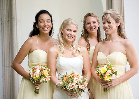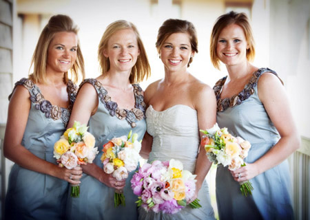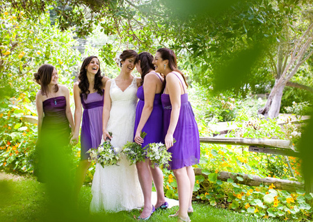 藍(lán)色,是永恒的象征;紫色表現(xiàn)神圣的愛與精神;橙色象征繁榮、光輝;紅色傳達(dá)熱烈和激 情……色彩的趣味寓意深長(zhǎng)。這個(gè)季節(jié),為你的伴娘選擇一款配合婚禮主色調(diào)的彩色伴娘服吧,成就婚禮上絕對(duì)靚麗的獨(dú)特風(fēng)景!