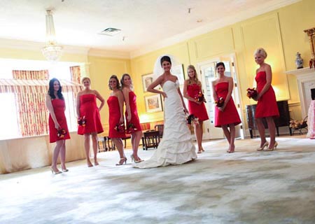 國(guó)人也許比較難接受伴娘們身著大紅色的小禮服,但是圖中的伴娘團(tuán)真的很養(yǎng)眼,決定與大家分享畢竟國(guó)情不同,我們的大紅代表著最最喜慶的事物,呵呵~強(qiáng)大的陣容??!