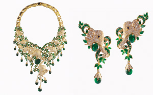 贊比亞祖母綠、黃金。項(xiàng)鏈和耳環(huán)一套價(jià)格從$120,000起