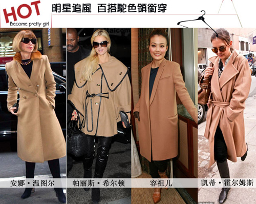 駝色大衣早已成為本季最受喜愛(ài)的時(shí)尚單品,這個(gè)冬季你要是沒(méi)有一件駝色衣服可就落伍了哦。CHLOE MaxMara Miu Miu 等大牌紛紛推出了各種款式的駝色大衣,眾多明星也是對(duì)其愛(ài)不釋手。不可否認(rèn),駝色的優(yōu)雅與知性,以及散發(fā)出來(lái)濃郁的溫暖氣息可是其他冷色調(diào)所無(wú)法比擬的。這個(gè)冬天你為自己準(zhǔn)備一件駝色大衣了么?