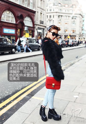 今年走俏的短款皮草憑借毛絨絨的手感以及嬌小的體型深受MM們的喜愛。的確避免長(zhǎng)款毛毛外套的累贅顯老。短款就俏皮很多啦。搭配高腰牛仔褲露出你的纖細(xì)腰身,反差效果不是一般贊!