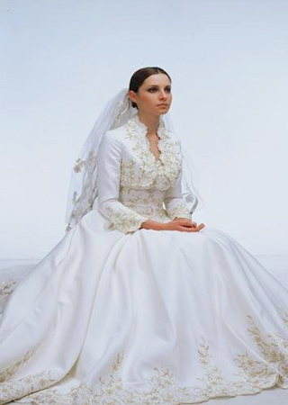 披肩和婚紗禮服的搭配已經(jīng)是很常見也很經(jīng)典的選擇,但隨著婚紗設(shè)計(jì)宮廷風(fēng)格發(fā)展,經(jīng)典的毛披肩,帶來的皮草感覺與宮廷風(fēng)格上演了精彩的奢華混搭?;榧喛梢允悄ㄐ亍⒌鯉?、深V領(lǐng)、性感中空裸背款型,都可以與毛披肩混搭,而毛披肩帶袖與蝙蝠衫風(fēng)格的演變也使得混搭風(fēng)格不僅奢華,而且時(shí)尚。毛披肩帶來了奢華皮草質(zhì)感,宮廷風(fēng)格婚紗緞面、繡花與較多亮片、水鉆也將新娘裝扮出高貴氣質(zhì)?;齑钚Ч蔀槎緹狳c(diǎn),不管是酒店婚禮還是教堂婚禮,都搭配完美、美輪美奐