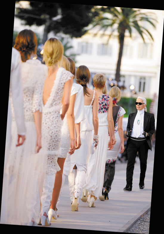 隆重其事是CHANEL慣來對(duì)早春發(fā)布會(huì)的態(tài)度,近幾年都將陽光沙灘作為最重要的背景。而原裝正版的2012早春發(fā)布會(huì)早在今年戛納電影節(jié)之前就舉辦了,因?yàn)闀?huì)場設(shè)置在緊挨著昂蒂布海岬的Eden-Roc酒店,距離電影節(jié)現(xiàn)場相當(dāng)近,到場的明星名人也相當(dāng)多,包括有國內(nèi)代表湯唯,一派星光熠熠,所以也被譽(yù)為戛納紅地毯的預(yù)演。到今年九月份,品牌將部分作品帶到北京一艘游艇上,面對(duì)國內(nèi)媒體再現(xiàn)了這場屬于2012早春的華麗假期。