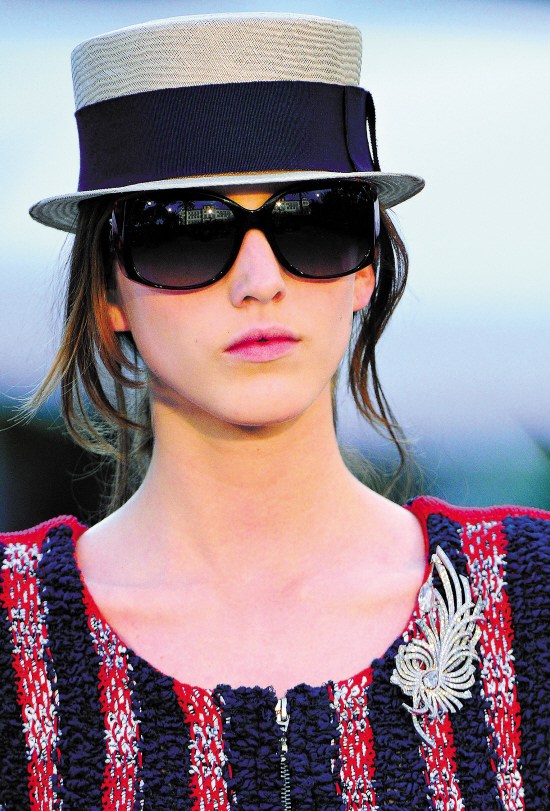 早春系列的服飾搭配,中性的禮帽和太陽眼鏡處處可見(CHANEL)