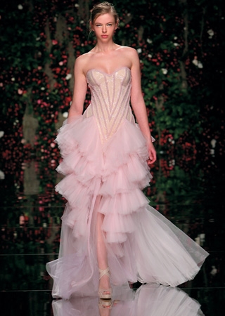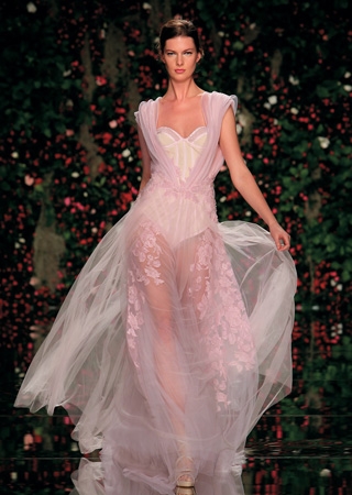 ??? 輕柔薄紗的婚紗禮服,新娘嬌媚的身軀在柔軟飄逸的衣裙襯托下曼妙無(wú)比,含苞待放猶如花兒般嬌羞