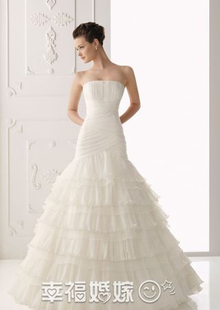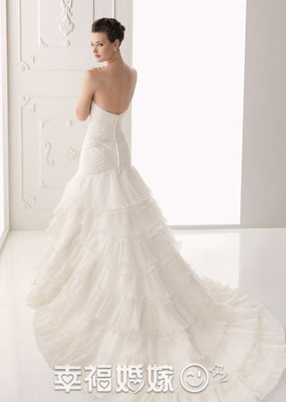 ??? alma novia2012婚紗采用了不少華麗的重工,比如十幾層的手工蕾絲裙擺,排列縝密的珍珠鑲邊,手工打造的珠片坎肩……相當適合在冬季穿著,讓你優(yōu)雅華麗出嫁