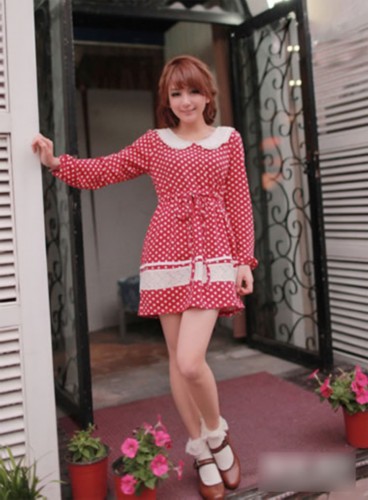 圓點抽繩公主娃娃領(lǐng)連衣裙