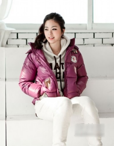 淡紫色短款羽絨服,繡花商標的裝飾讓這款羽絨服更加有休閑運動的風格,內(nèi)搭毛衣或連帽衛(wèi)衣,保暖又時尚。