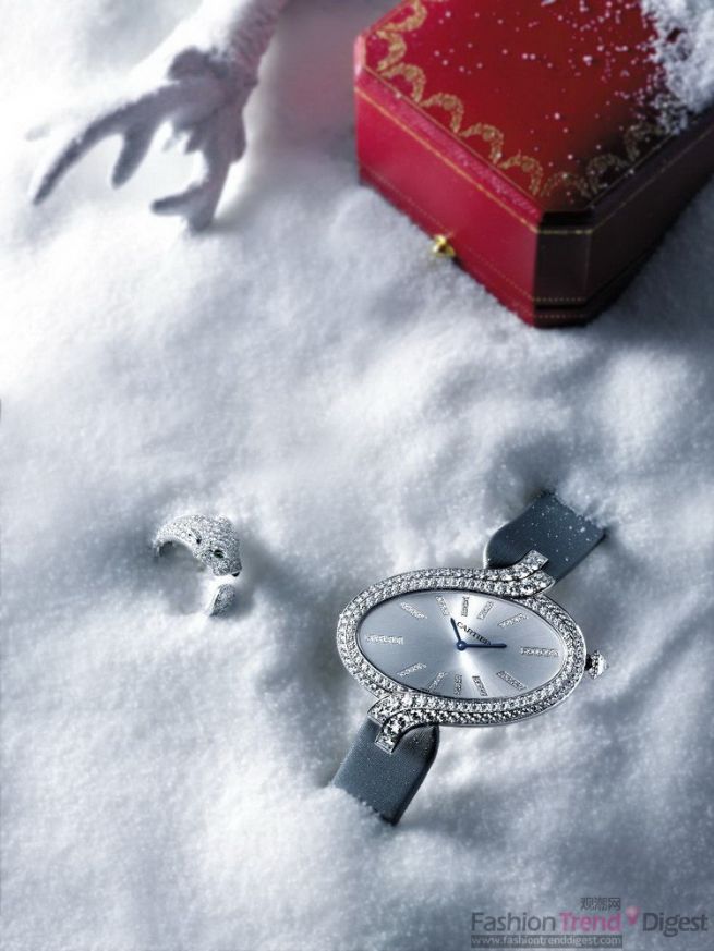 華美的女士配飾在雪色的映襯下更顯高貴優(yōu)雅,金銅色女士手袋,選用柔軟的絨面小牛皮與獨特的水蛇皮,淋漓盡致地展現(xiàn)出時尚魅力。崇尚簡約自然的Marcello de Cartier手袋則以大氣的設(shè)計與細膩的材質(zhì)為柔美的女性氣質(zhì)增添干練元素。穿梭林間的獵豹以靈動姿態(tài)伏于女士書寫系列之上,不經(jīng)意間透露的神秘氣息,延續(xù)著夢幻般的無限魔力