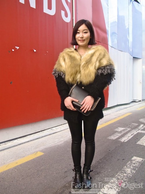 2. 皮草也同樣具有保暖效果,你可以穿著一件毛茸茸的黑色大衣,搭配黑色打底褲和軍靴,如果個子嬌小的你可以在肩部搭上皮草微薄御寒,同時準(zhǔn)備一款時尚的手包吧