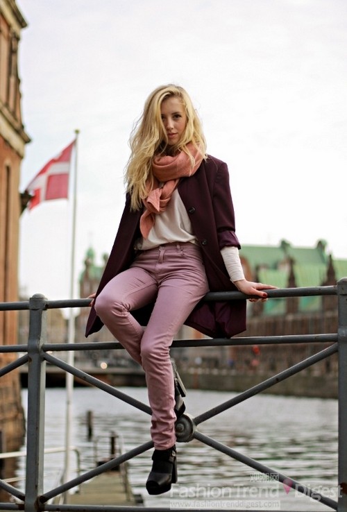3. 如果你不想在冬天穿著深色調(diào),你也可以選擇不同紫色搭配,深紫色的外套、淺紫色的長褲,以及粉色的圍巾,既保暖又能彰顯出年輕人的活力與青春氣息 ?