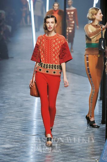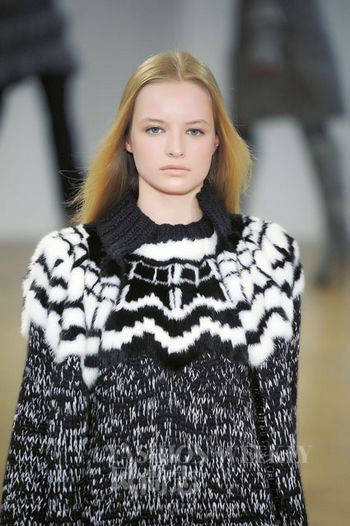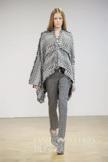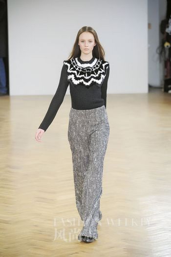 雪花紋樣的時髦說法是“雪柄”,有心人考證這說法來自東瀛,途徑香港,最終來到內(nèi)地。像手工制品被稱作“手作”一樣,四字變兩字不只是簡潔,中間更蘊含了清新活潑的意味。一個柄字,容易讓人想到滑雪者的手杖。蹬滑雪板持手杖的小人形象,確實經(jīng)常與雪花紋樣結(jié)伴出現(xiàn)。2010年D&G推出的秋冬系列即是以雪花為靈感的針織滑雪裝,這些帶雪花紋樣的緊身衣與雪紡長裙還有滑雪靴的組合,堪稱經(jīng)典。今年Aubin?&?Wills在圣誕期間推出的毛線開衫、手套和帽子,皆有滑雪小人與雪花的組合。Jil Sander則更抽象一些,模特大多穿帶有風帽的滑雪裝,顏色鮮艷,還有六角紋出現(xiàn)在大紅毛衫上,好像經(jīng)過畢加索思考后的雪花