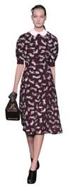 讓我們再回到當(dāng)季秋冬,看看Marc Jacobs如何耍著他的文藝伎倆來成就商業(yè)上的成功。路易威登在零售上的收益更多來自含帶品牌附加值的商業(yè)線配飾,而真正的走秀款,卻與Marc Jacobs自家同名Label的主線一樣,主要是拿來借給媒體和明星展示用的,但這種“高于生活”的造型又有別于JohnGalliano時(shí)期賦予Dior的夸張戲劇氣質(zhì),而顯出一分文藝。比如本季T臺(tái)上頻現(xiàn)的白色翻折領(lǐng),典型的時(shí)髦小清新路線,卻與厚重的寬肩男式軍裝大衣以及凹凸有致的女性束胸衣結(jié)合甚密。
