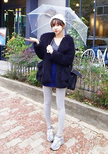 ????2.羊羔毛外套看起來更可愛哦? ????韓國(guó)街拍中羊羔毛外套在冬季非常高街。憑借柔軟手感,輕薄質(zhì)感贏得不少年輕MM的喜愛。即使厚厚的外套看起來好像更加襯托的你的嬌小與可愛。這里更建議深色為主哦。盡量減輕膨脹感哦