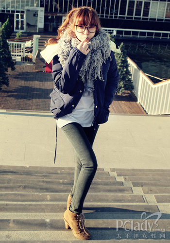 ????3.運(yùn)動(dòng)款棉服時(shí)髦搭 ????冬天除了正式場(chǎng)合的大衣、保暖的羽絨服,還要不可缺少的就是棉服啦。運(yùn)動(dòng)短款更好彌補(bǔ)嬌小身材問題,要知道腿部細(xì)節(jié)才是重點(diǎn)。配上針織圍脖小臉效果非常明顯
