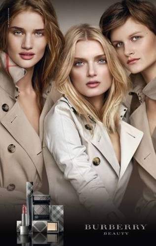 BURBERRY Beauty的廣告,由著名攝影師Mario Testino,在Christopher Bailey的指導(dǎo)下于倫敦拍攝,而模特兒是來自英國的Rosie Huntington-Whiteley、Nina Porter和Lily Donaldson