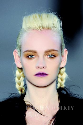 額前的發(fā)髻高聳,頗有強勢的貴族風(fēng)范,耳后的兩個辮子被輕輕地綁在一起,平添了一分少女的俏皮感。
