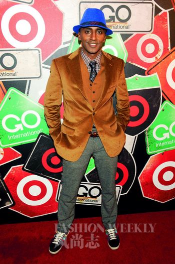 瑞典籍紐約酒店合伙人Marcus Samuelsson穿衣注重配色及材質(zhì)。絨質(zhì)琥珀色西服配寶石藍(lán)禮帽以及法蘭絨西褲,對(duì)比相當(dāng)奇妙