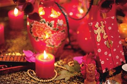 雖然在大部分婚禮上,新郎、新娘穿的都是西式的禮服式婚紗,但在婚禮的格調(diào)和裝飾上,大紅元素仍然是最受新人歡迎的系列,即是在平常日子,都有50%的新人會選擇這個色系,理由是喜氣、熱鬧、華貴、老人喜歡。而到了年底,比如元旦或春節(jié),更有將近70%的新人會選擇大紅色。然現(xiàn)在的紅色婚禮,絕不走過去那種“抬花轎+掀蓋頭”的老套情節(jié)。新人的要求是中西結(jié)合,紅要紅的典雅,富貴要富貴得有層次。此處要傳授大家一個小訣竅,有事沒事跑幾趟古玩市場、二手市場,花小錢淘一些好東西,經(jīng)過改裝就能讓婚禮上的大紅變得豐富而有韻味