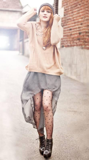 波點(diǎn)和黑絲都是絲襪元素里的寵兒,淺色黑絲與圓點(diǎn)的結(jié)合宛如動(dòng)畫片人物一樣可愛