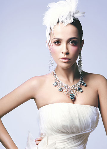 海藍(lán)色珠寶首飾加上閃亮美鉆和宮廷感的配飾造型,使新娘猶如中東的皇室公主般神秘而美麗 ?