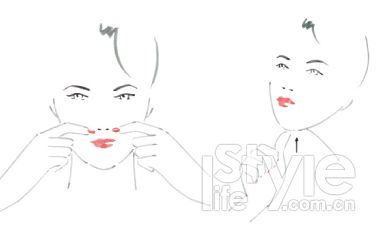2.用食指和大拇指按摩嘴角和法令紋的位置