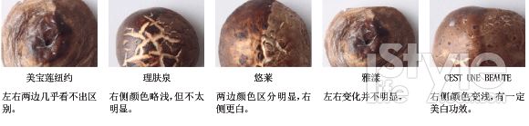 將產(chǎn)品涂抹在香菇的一半后放入水中浸泡,24小時后觀察兩邊的情況,來判定抑制黑色素生成的功效。