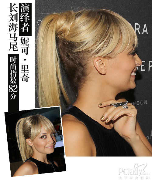 演繹心機(jī):辣媽妮可這款馬尾很俏皮,雖然大減齡,但是一點(diǎn)也不簡(jiǎn)單哦。除了長(zhǎng)劉海搭配馬尾辮,還要預(yù)先從頭頂分出一部分頭發(fā)纏繞發(fā)尾,此時(shí)手法一定要穩(wěn),以免手一抖就弄亂了整個(gè)發(fā)型,胳膊容易累的MM可要多加練習(xí)了,最后遮住橡皮筋,這樣看起來(lái)更c(diǎn)hic