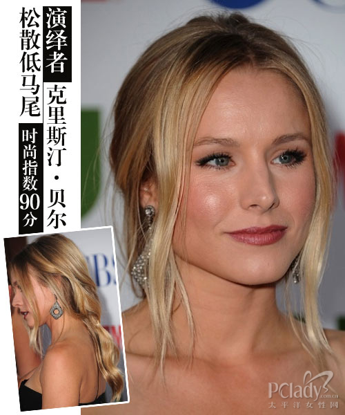 演繹心機(jī):空氣感卷發(fā)可不是日系發(fā)型的專利,石頭姐將卷發(fā)分成三個(gè)部分,并細(xì)心的匯集成馬尾,使頭頂?shù)念^發(fā)微微拱起,這承襲了傳統(tǒng)歐式公主發(fā)型的精髓,因而這款發(fā)型得以顯得甜美夢(mèng)幻。中分波浪劉海是石頭姐的另外一個(gè)小心機(jī),這種劉海通常是修飾臉型的最佳方案,讓臉稍大的MM立馬顯得嬌媚起來(lái)