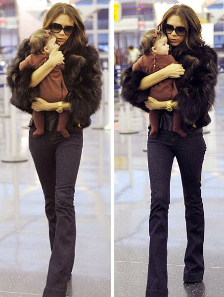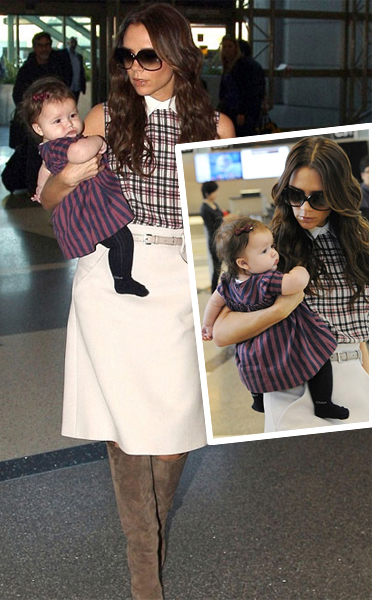 這樣的情形總是讓人倍感溫暖,辣媽維多利亞一身勁酷,修長的美腿惹人眼,搭配著皮草外套真是風(fēng)姿卓越的嬌人兒。她緊緊懷抱著小哈珀像是抱著稀世珍寶一樣的呵護著,圍繞著,生怕小哈珀受一點傷害。愛女心切的維多利亞讓人看到了她溫情的母愛。小哈珀一身小精靈一樣的連身裝,頭上還有個同色系發(fā)卡,可愛到爆