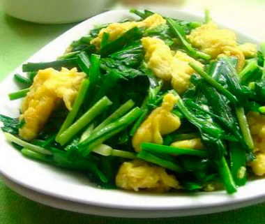 春天氣候冷暖不一,需要保養(yǎng)陽氣。而韭菜最宜人體陽氣,有天然“偉哥”之稱。韭菜含有揮發(fā)油、蛋白質(zhì)、脂肪和多種維生素等營養(yǎng)成分,有健胃、提神、強(qiáng)腎等功效。春韭為韭菜中的佼佼者,味道尤為鮮美。其根白如玉,葉綠似翠,清香馥郁。春韭吃法多樣,既可佐肉、蛋、蝦、墨魚等,又可做蒸包、水餃的餡料。炒綠豆芽或豆腐干時加些春韭,格外芳香可口