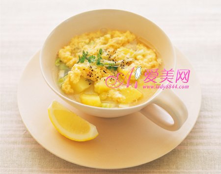 材料:西蘭花40克、土豆1個(gè)、生雞蛋1個(gè)、味噌1勺、芝士粉1茶匙、檸檬少許、水200毫升。