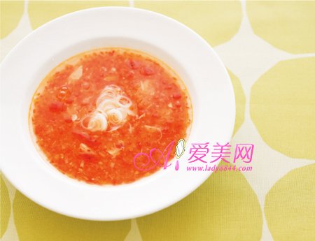 材料:紅甜椒50克、生姜少許、京蔥少許、金槍魚(yú)罐頭半罐、鹽1/3茶匙、胡椒粉少許、藕粉1勺、辣油少許、水200毫升。