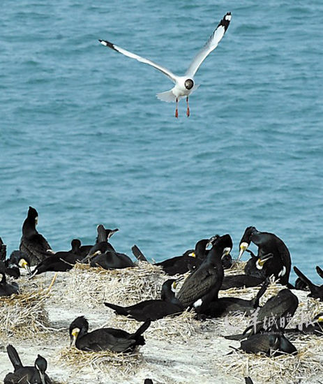 青海湖鳥(niǎo)島位于青海湖西北隅,由一東一西兩個(gè)島嶼組成。西面的叫海西山,又名小西山,狀若駝峰,面積只有0.27平方公里,每年四月來(lái)自南方云貴一帶及印度洋島國(guó)的斑頭雁、魚鷗、棕頭鷗和其它鳥(niǎo)類10萬(wàn)余只候鳥(niǎo)在此筑巢棲息,遮天蔽日,鳥(niǎo)聲喧囂,數(shù)里之外也清晰可辨。距海西山島東一公里是海西皮島,面積46公頃。這兩個(gè)島合稱為鳥(niǎo)島,其鳥(niǎo)眾多,堪稱世界上分布最稠密的“鳥(niǎo)類王國(guó)”。
