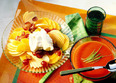 ??? 法國(guó)菜在材料的選用較偏好牛肉、小牛肉、羊肉、家禽、海鮮、蔬菜、田螺、松露、鵝肝及魚(yú)子醬;而在配料方面采用大量的酒、牛油、鮮奶油及各式香料;在烹調(diào)時(shí),火侯占了非常重要的一環(huán),如牛、羊肉通常烹調(diào)至六、七分熟即可;海鮮烹調(diào)時(shí)須熟度適當(dāng),不可過(guò)熟,尤其在醬料(Sauce)的制作上,更特別費(fèi)功夫,其使用的材料很廣泛,無(wú)論是高湯(Stock)、酒、鮮奶油、牛油或各式香料、水果等,都運(yùn)用的非常靈活。