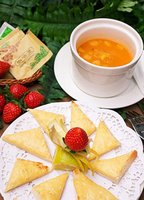 ??? 法國(guó)的起司(Cheese)也是非常有名,種類繁多。依型態(tài)分有新鮮而硬的、半硬的、硬的、藍(lán)霉的和煙熏的五大類;通常食用起司時(shí)會(huì)附帶面包、干果(例如核桃等)、葡萄等。另外,法國(guó)菜在享用時(shí)非常注重餐具的使用,無(wú)論是刀、叉、盤或是酒杯,因?yàn)檫@些均可襯托出法國(guó)菜高貴之氣質(zhì)。