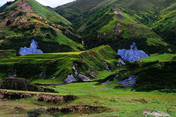 八美土石林地處八美鎮(zhèn)東南、國(guó)道317線(xiàn)路旁,距離八美鎮(zhèn)6公里,沿雅礱江支流慶大河上游東岸分布,分布面積約5平方公里。遠(yuǎn)眺石林,如群峰匯聚,萬(wàn)塔林立,崢嶸起伏,重巒疊嶂,景象萬(wàn)千,如同精心培植的盆景一般。八美的石林是罕見(jiàn)的糜棱巖土石林,在陽(yáng)光的照射下,時(shí)而呈現(xiàn)閃亮的藍(lán)色,時(shí)而呈現(xiàn)蒼墨色,時(shí)而又變成了灰色。色彩隨著四季的天氣變幻著。身臨其境,有的似猛虎下山、有的似白鹿望天、有的似獼猴酣睡、似石柱的、似蘑菇的、似蓮花的、讓你目不暇接。宛如置身神秘的天外星際。