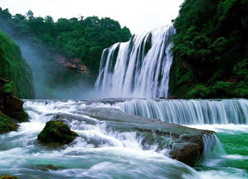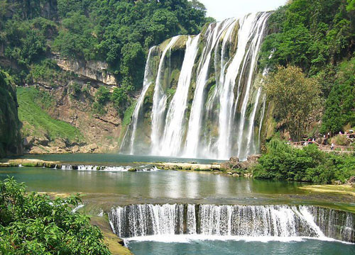 著名的黃果樹大瀑布,是貴州第一勝景,中國第一大瀑布,也是世界最闊大壯觀的瀑布之一。黃果樹瀑布位于貴州省安順市鎮(zhèn)寧布依族苗族自治縣境內(nèi)的白水河上周圍巖溶廣布,河寬水急,山巒疊翠,氣勢雄偉,歷來是連接云南、貴州兩省的主要通道。白水河流經(jīng)當(dāng)?shù)貢r河床斷落成九級瀑布,黃果樹為其中最大一級。以水勢浩大著稱,也是世界著名大瀑布之一。瀑布對面建有觀瀑亭,游人可在亭中觀賞洶涌澎湃的河水奔騰直洩犀牛潭。騰起水珠高90多米,在附近形成水簾,盛夏到此,暑氣全消。瀑布后絕壁上凹成一洞,稱“水簾洞”,洞深20多米,洞口常年為瀑布所遮,可在洞內(nèi)窗口窺見天然水簾之勝境。