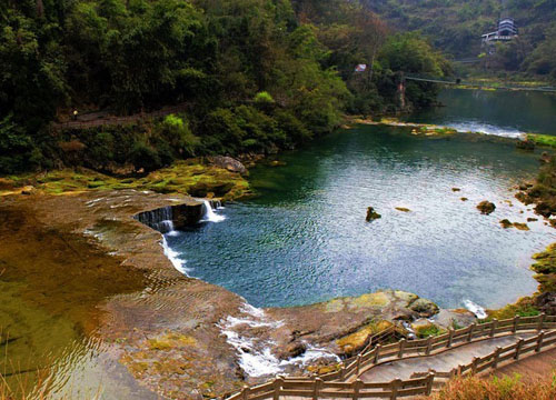 3、拍照一定要下到犀牛潭邊,那里的景色、視角和取光都是最理想的,千萬不要和一大群人擠在去水簾洞的路上搶鏡頭,角度、效果均不好,而且經(jīng)常會讓其他的游人成為你照片里的主角。另有一些取景的最佳地方:一、取瀑布全景,以觀瀑亭為佳,可以遠(yuǎn)眺整個黃果樹瀑布的全貌;二、取彩虹,以“水簾洞”三字石牌旁為佳處,技術(shù)好的可照出雙重彩虹(上午此處為折射區(qū));三、望水亭,可以鳥瞰黃果樹瀑布飛流直下的雄姿。