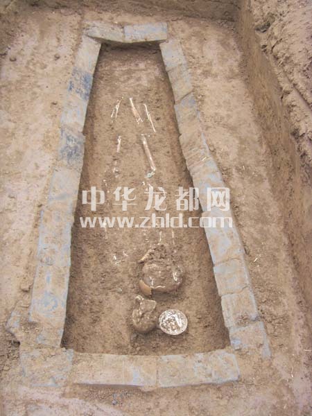 ????墓葬平面呈南北長2.5米、東西寬0.9米的長方形,墓室深0.6米。清理至墓室底部時,勘探人員發(fā)現(xiàn)人骨一具,頭向正南,經(jīng)鑒別性別為男性,年齡在60歲左右,仰身直肢葬。在墓室南部清理出隨葬器物白釉瓷壺和白釉瓷碗。在人骨腰部清理出當(dāng)時的銅錢數(shù)枚。根據(jù)墓葬型制、開口層位,推測該墓為宋代磚室墓葬。